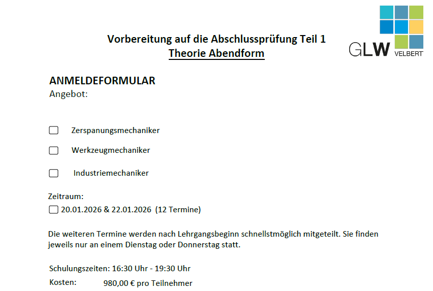 Vorbereitungslehrgang zur gestreckten Abschlussprüfung Metall Teil 1 Theorie 2026